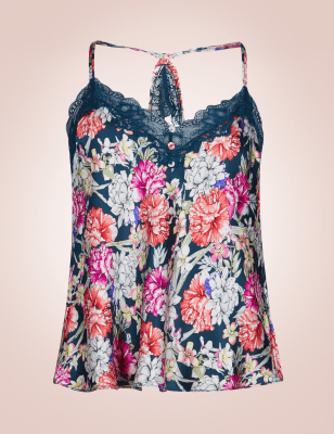 Шёлковая камисоль с кружевной отделкой и ярким цветочным принтом