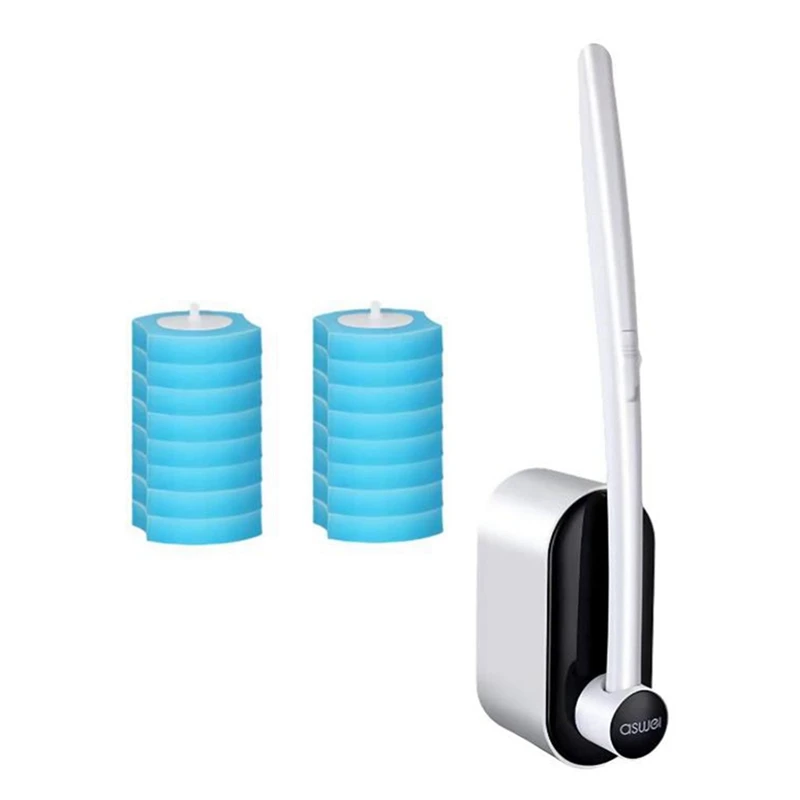 Щетка для унитаза, настенная щетка для унитаза, с держателем для туалетной щетки и 16 одноразовых чистящих насадок для туалетной комнаты