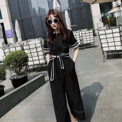 Women Jumpsuit 2020 Summer Style Lapel Pocket Button High Waist Casual Slim Loose Work Clothes Jumpsuit Pants Nine Point Chiffon