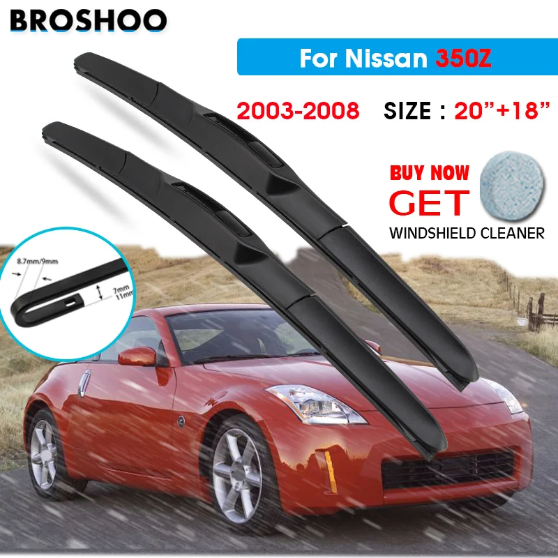 Щетка стеклоочистителя для Nissan 350Z 20 "+ 18" 2003-2008 стеклоочистители для лобового стекла лезвия для мытья окон подходят для U Hook Arms