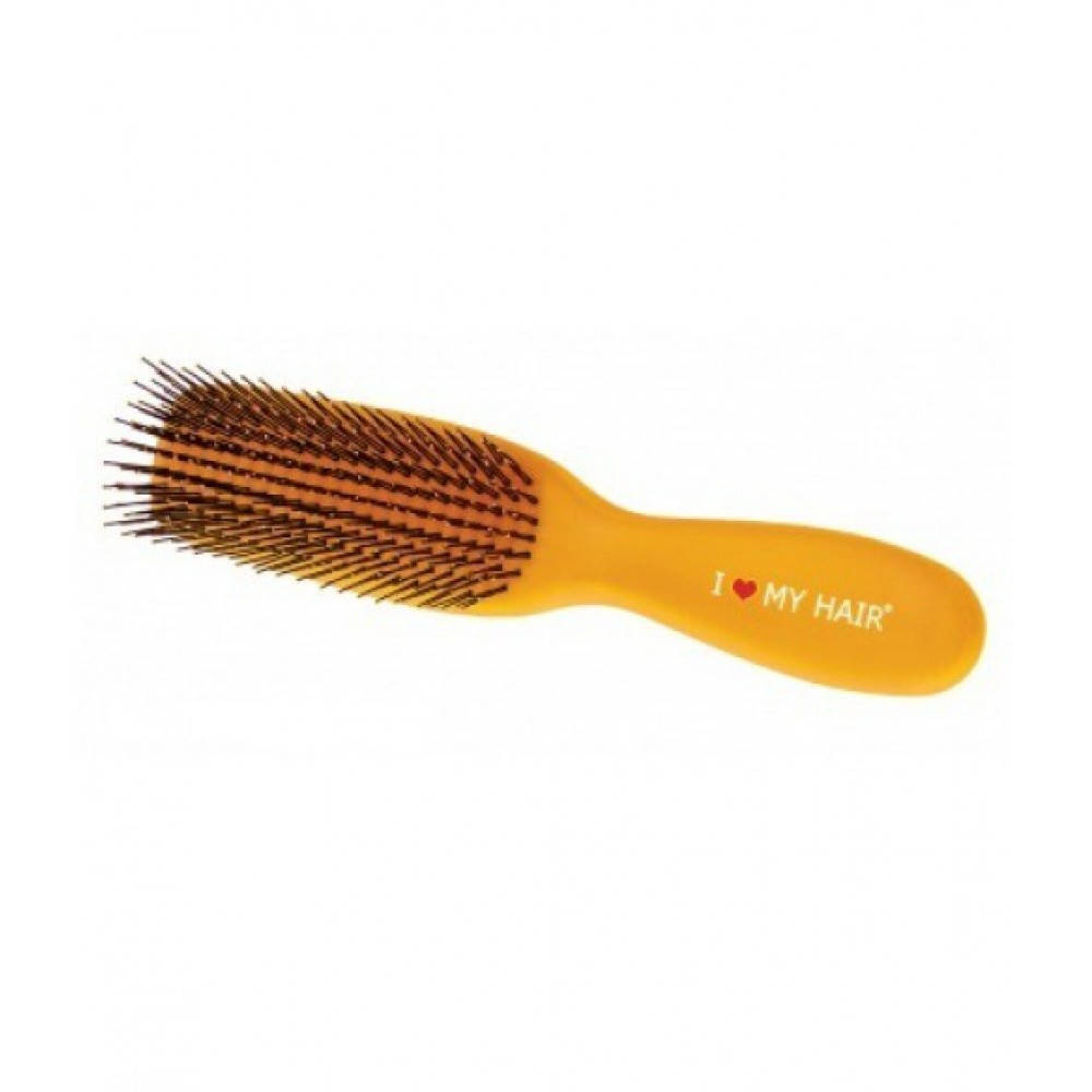 Каждый пучок щетины содержит пару специальным образом подобранных ультрагибких нейлоновых щетинок разной длины, длинные - помогают распутать волосы, короткие - создают дополнительный массажный эффект, что стимулирует кровообращение и способствует росту новых волос