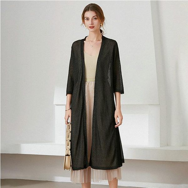 women's knits & tees 2021 women long knitted cardigan summer thin flash silk middle coat air conditioner sun proof shirt female knit sw, White