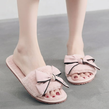 Tangnade Slippers for Women on Sale Home Slip-On Furry Flat Home Plush Bow Open Toe Keep Warm Slippers Shoes