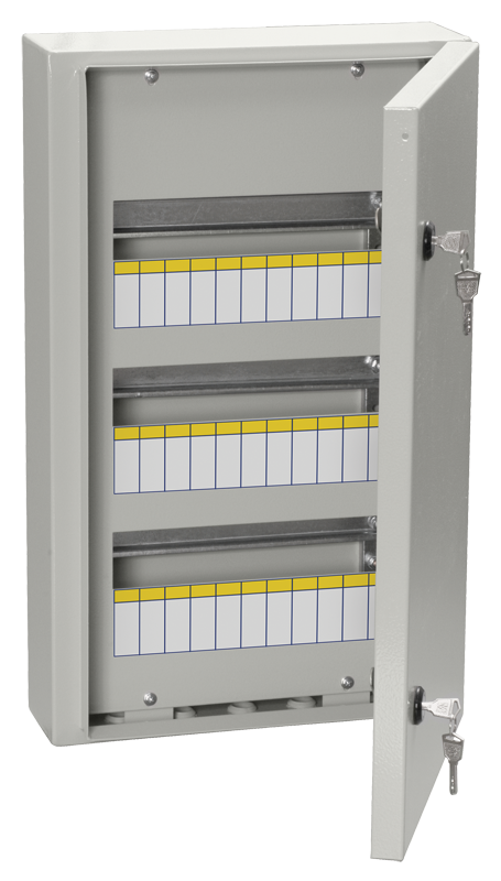 Щит распределительный ЩРн-36з-0, навесной, металл, 3 ряда/36 модулей, замок с ключом, серый, IP 54 IEK (MKM11-N-36-54-Z), ЩРн-36з-0