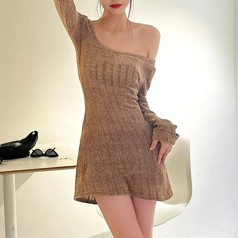 2023 Autumn new Women's Fashion Sexy Pure Desire Knitted Long Sleeve Dress befree