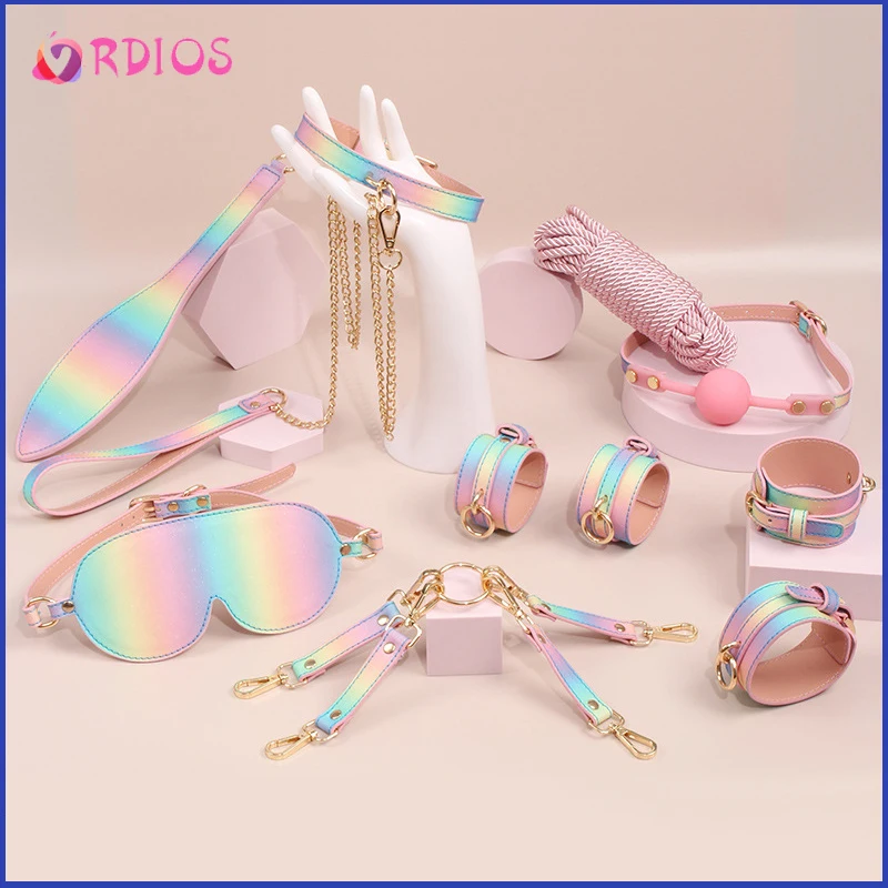 Экзотические аксессуары vrбог, наручники, воротник, секс-игрушка для взрослых, набор бондажа для БДСМ, красочная кожаная плетка для лепинтимные игрушки для женщин ков для мужчин