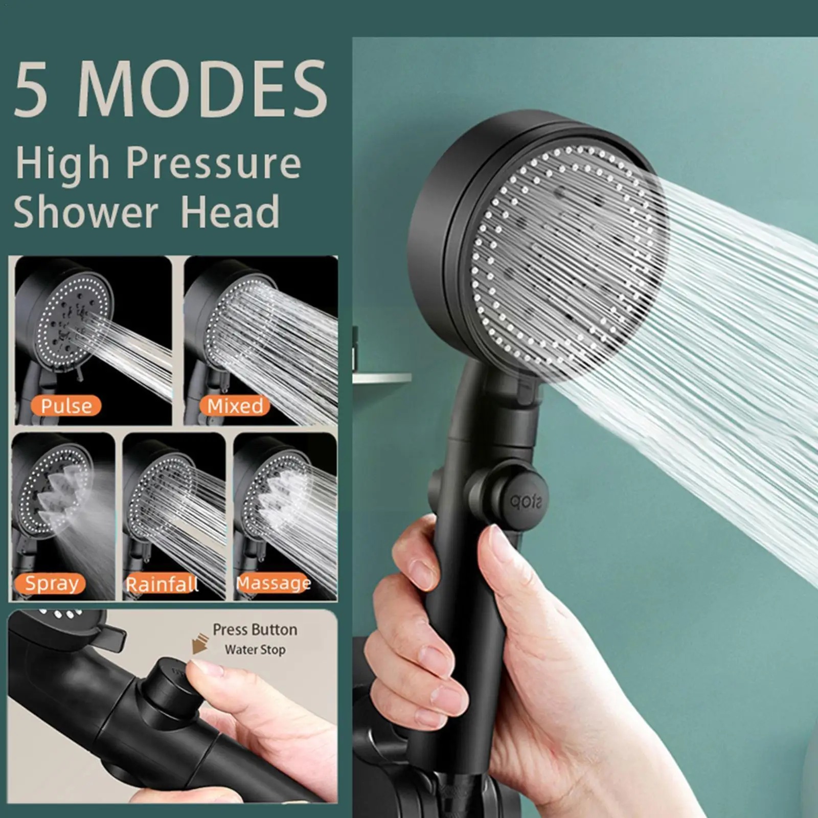 Экономия воды для душа, черный 5 режимов, регулируемый высокий водяной стоп для душа, для ванной комнаты, экологически чистый массаж под давл...