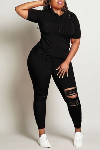 solid color womens designer tracksuits fashion ripped short sleeve long pants womens 2pcs sets casual females clothing, Gray