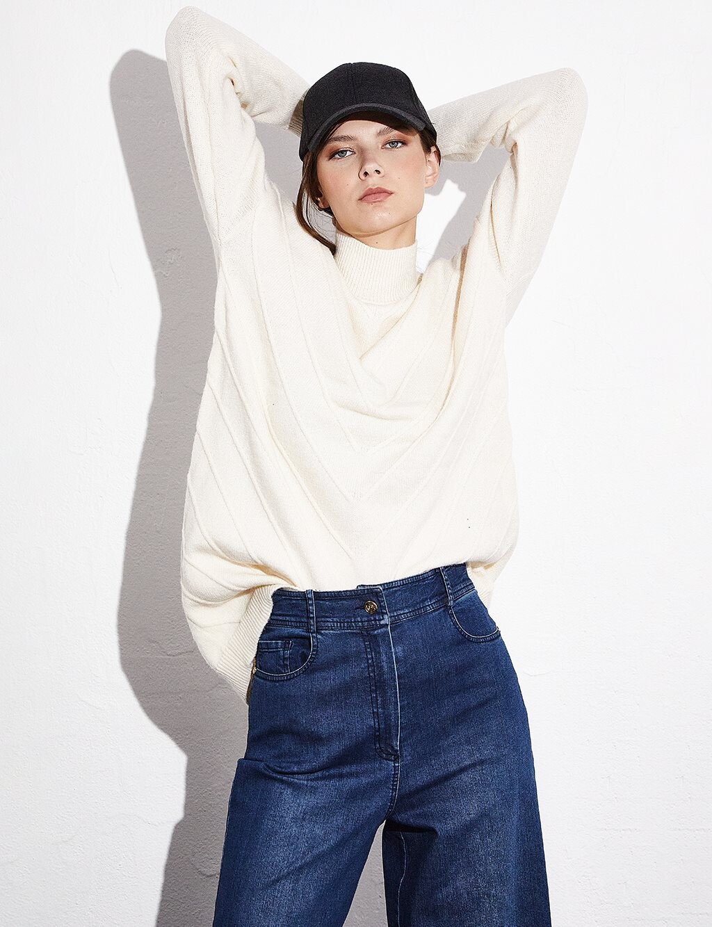 Эксклюзивная текстурированная трикотажная туника Fisherman's Collar кремового цвета Kayra