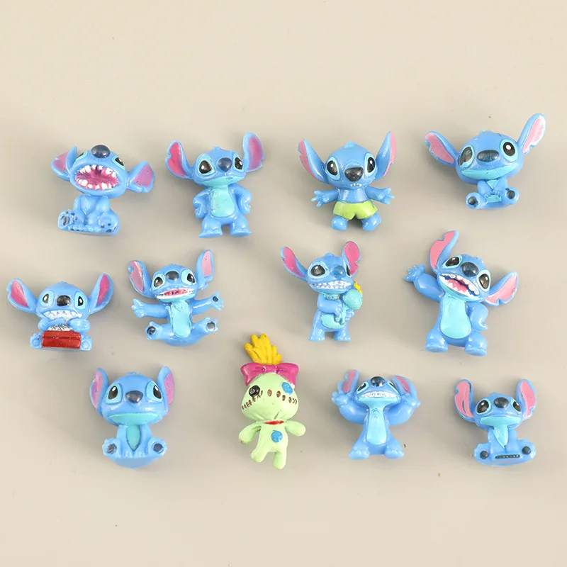Экшн-фигурки Disney 12 шт., Лило Стич, кукла 3 см, мини-фигурка ститча, микро-пейзаж, кукла, Декор, кавайные игрушки, рождественские подарки