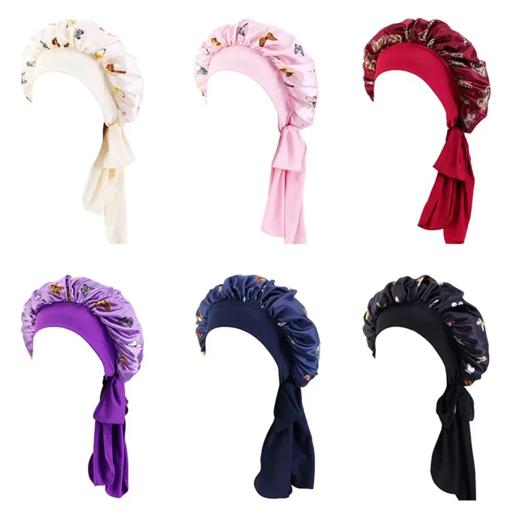 Эластичная Атласная шапочка, шапочка для сна для длинных густых волос, регулируемая атласная шапочка, Атласная шапочка для сна