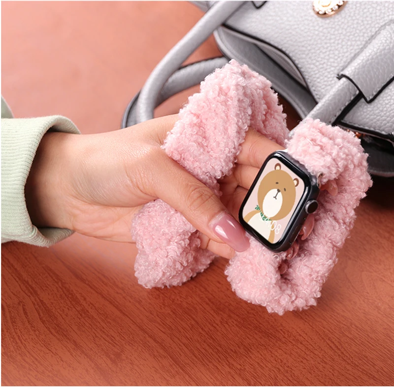 Эластичная резинка для волос браслет для Apple Watch ремешок 44 мм 42 мм 38 мм 40 мм 45 мм 41 мм ворс Корреа iWacth SE 7 6 Дамский ремешок для часов