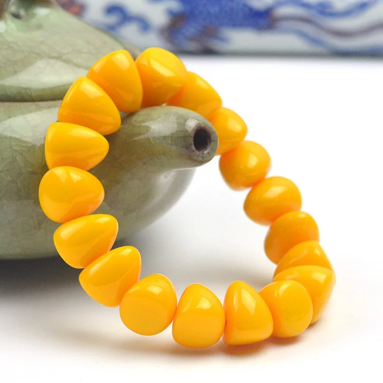 Эластичный браслет из натурального Балтийского янтаря, Женские Ювелирные изделия, браслеты из бисера с цветком и янтарем, браслеты ручной р...