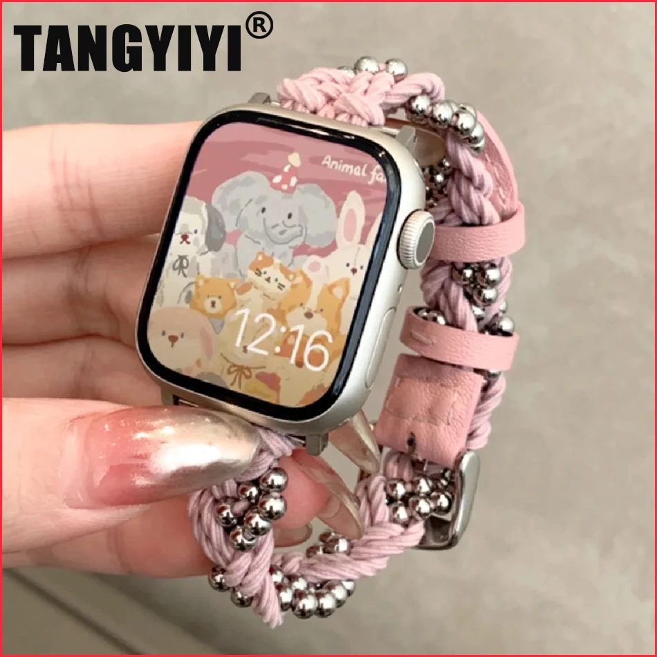 Эластичный нейлоновый ремешок для Apple Watch Band 8 7 6 SE 5 45 мм 44 мм 42 мм модный браслет из металлических бусин IWatch Ultra 49 мм 41 мм 40 мм 38 мм
