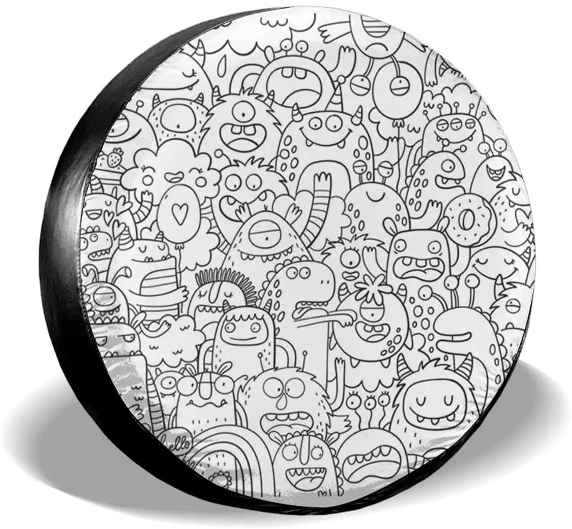 Fun Big Coloring Poster Doodle Style Animal Wildlife Abstract Spare Tire Cover Tire Covers Camping Waterproof Wheel Protectors