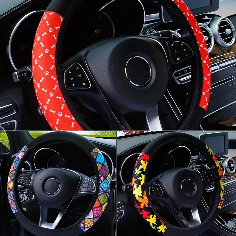 Эластичный чехол на руль автомобиля, модный нескользящий чехол на руль с цветным принтом, автомобильный Стайлинг, чехол на руль автомобиля, аксессуары для интерьера автомобиля
