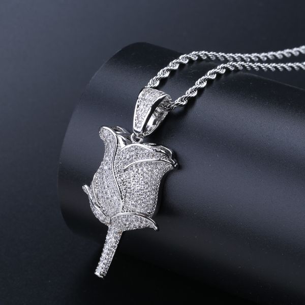 Элегантная белая роза подвески ожерелья для женщин хип-хоп рэппер ювелирные изделия микро проложили AAA CZ камень Bling лед из мужчин партии подарок