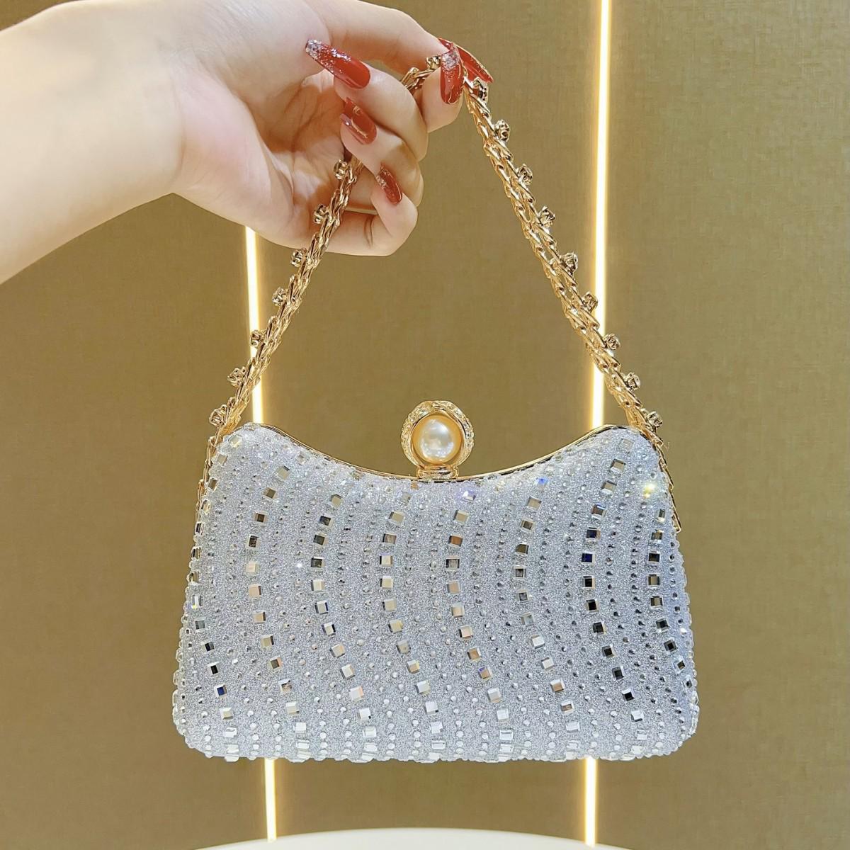 Элегантная вечерняя сумка через плечо в стиле ретро со стразами серебряный