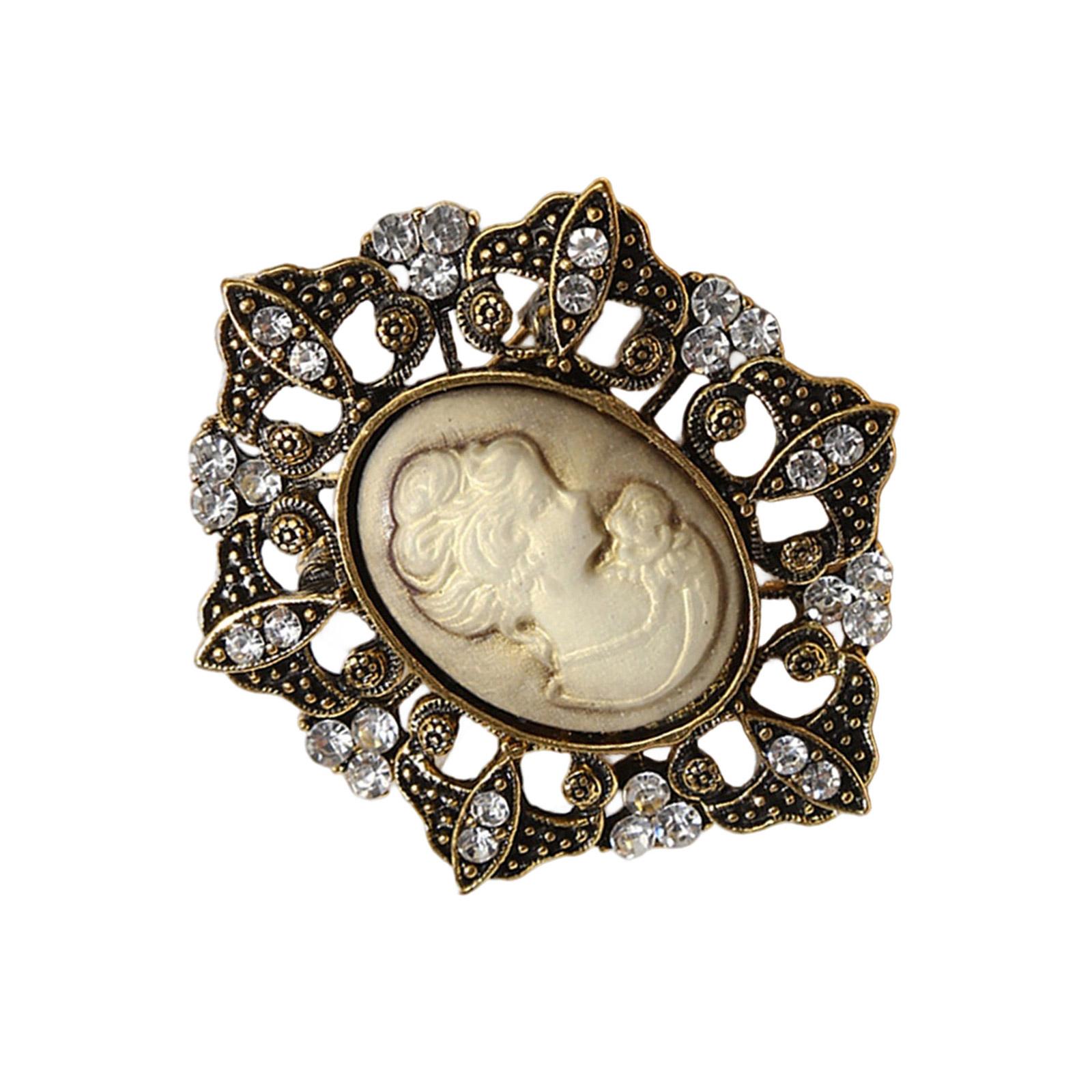 Элегантная винтажная брошь-камея, набор булавок с отделкой под состаренное золото, сверкающая камея из сплава, лацканная булавка для женщин, ювелирное изделие 1