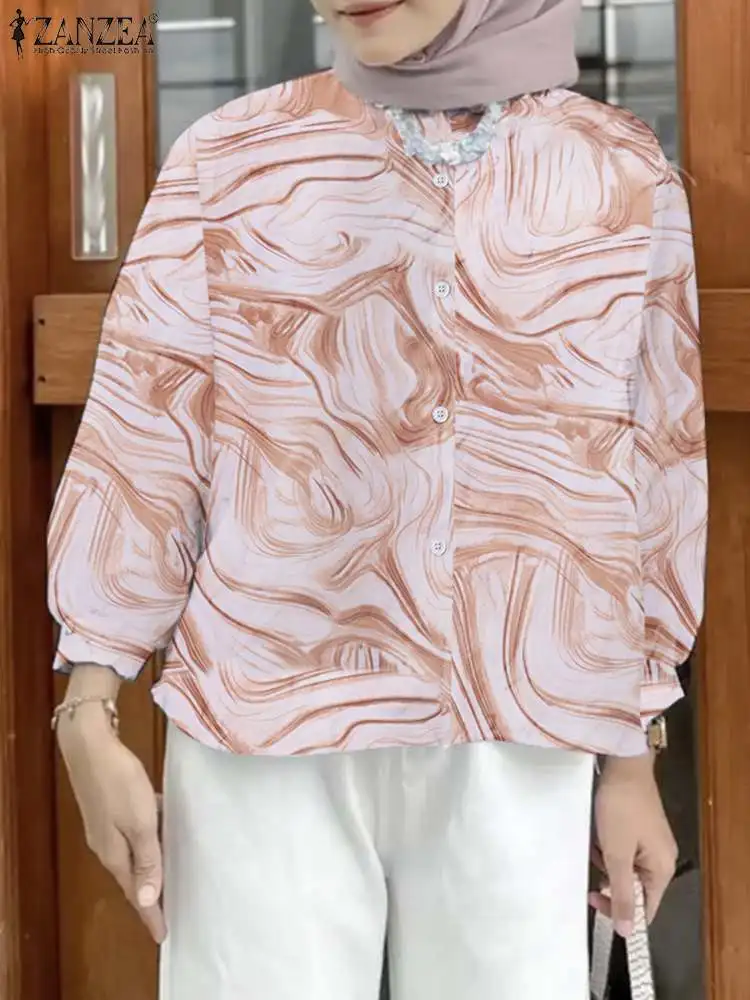 Элегантная женская рубашка с отложным воротником и рукавом 3/4 ZANZEA, осенняя винтажная блузка с цветочным принтом, семейная богемная Праздничная блузка, 2023