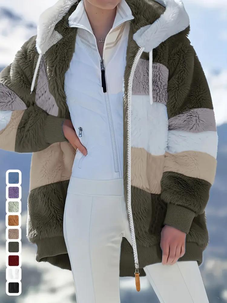 Элегантная женская флисовая куртка с капюшоном и карманами на молнии - Уютная и теплая для осени/зимы, машинная стирка 5XL армия зеленый