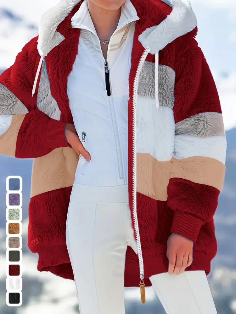 Элегантная женская флисовая куртка с капюшоном и карманами на молнии - Уютная и теплая для осени/зимы, машинная стирка 5XL вино красного