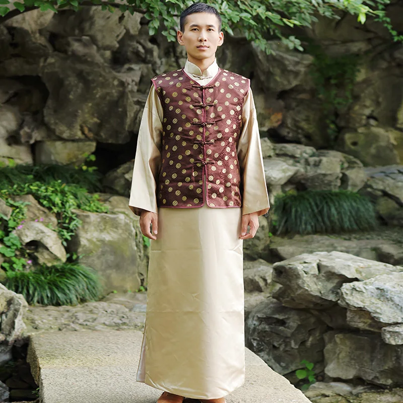 Элегантная мужская одежда для занятий ТВ-проигрыванием и фильмом, костюм премьер-министр Тан, традиционная китайская национальная одежда