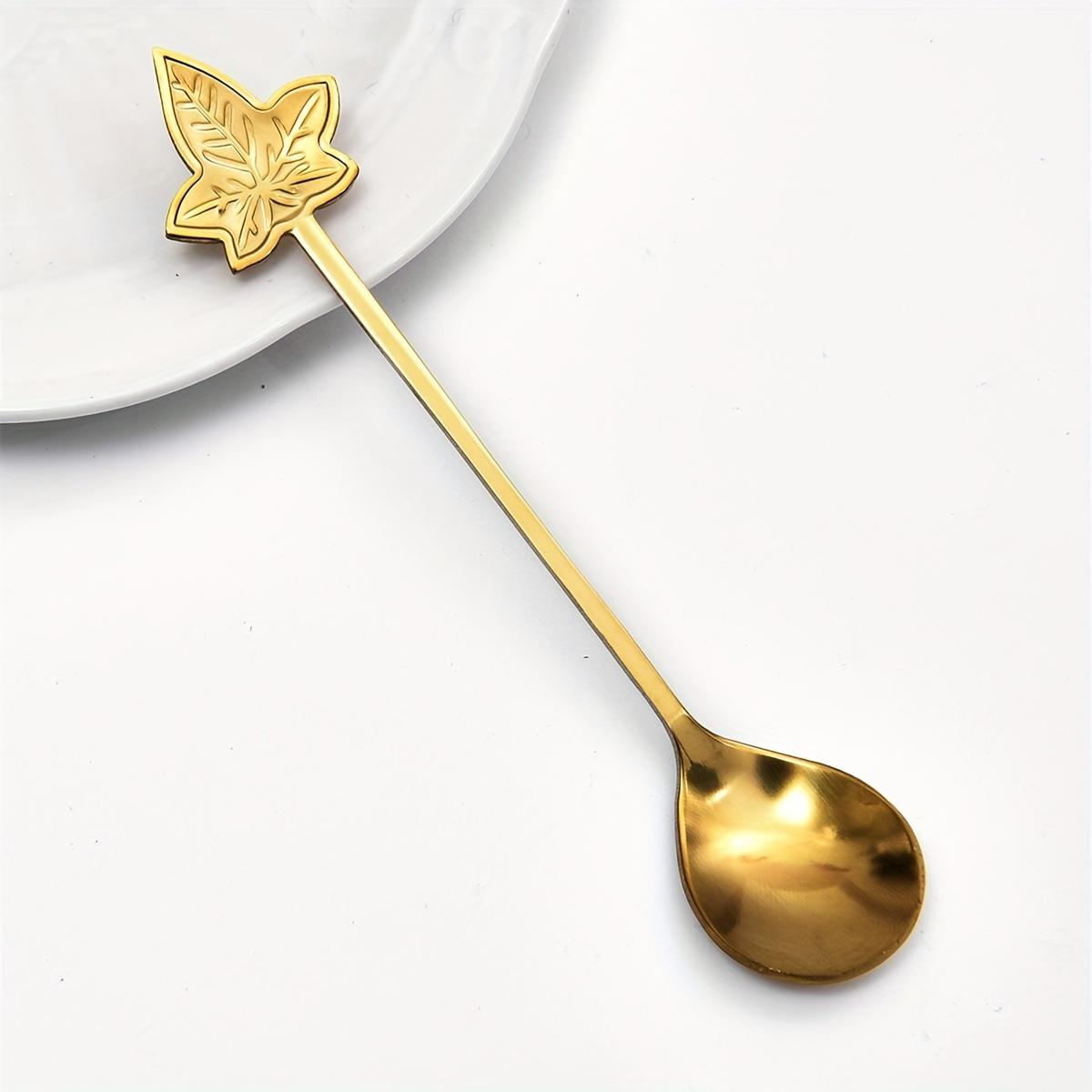 Элегантная позолоченная ложка в форме листа: Идеально подходит для размешивания кофе или подачи десертов - Материал: нержавеющая сталь 1pc