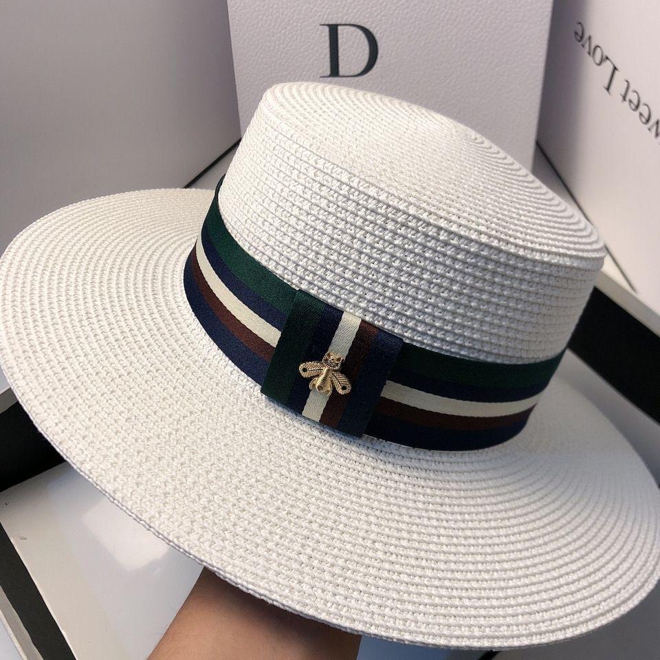 Элегантная соломенная шляпа с плоским верхом, женская летняя шляпа в британском стиле для отдыха на море с защитой от солнца белый