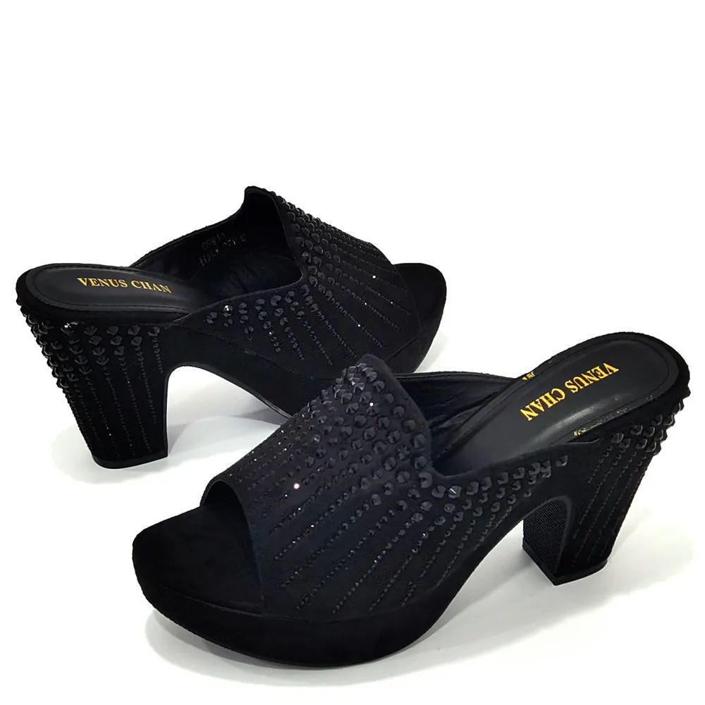 Элегантная стильная нигерийская женская обувь черного цвета на удобном каблуке украшение Стразы для свадебной вечеринки