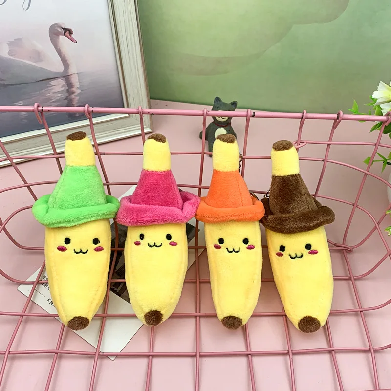 Stylish Exquisite Cute banana with a hat pendant plush accessories couple dolls catching machine dolls color Soothing doll gift
