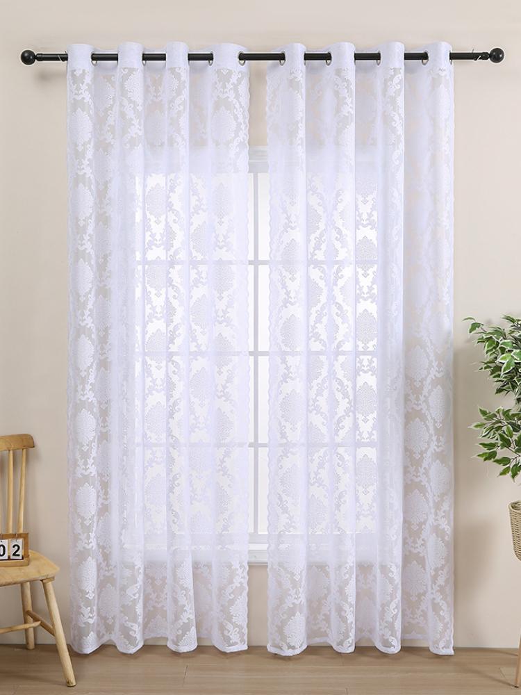 Элегантная французская кружевная белая прозрачная занавеска с цветочным узором - полупрозрачная, с люверсами сверху для легкого подвешивания - идеально подходит для гостиной, кухни, уединения 140*160CM белый