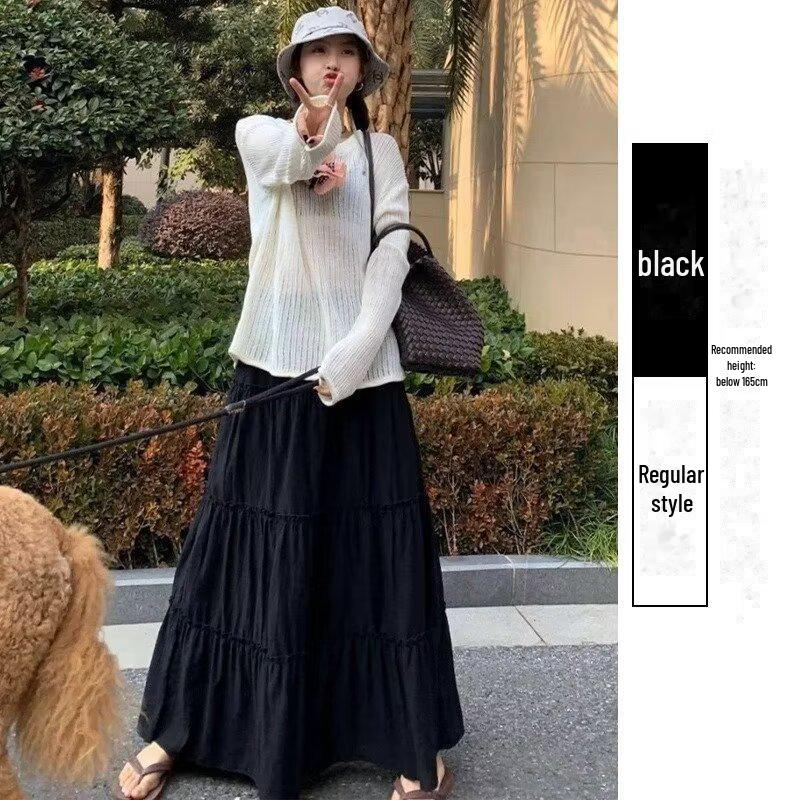 Элегантная французская юбка-трапеция с высокой талией и пышной юбкой на лето Small чёрный