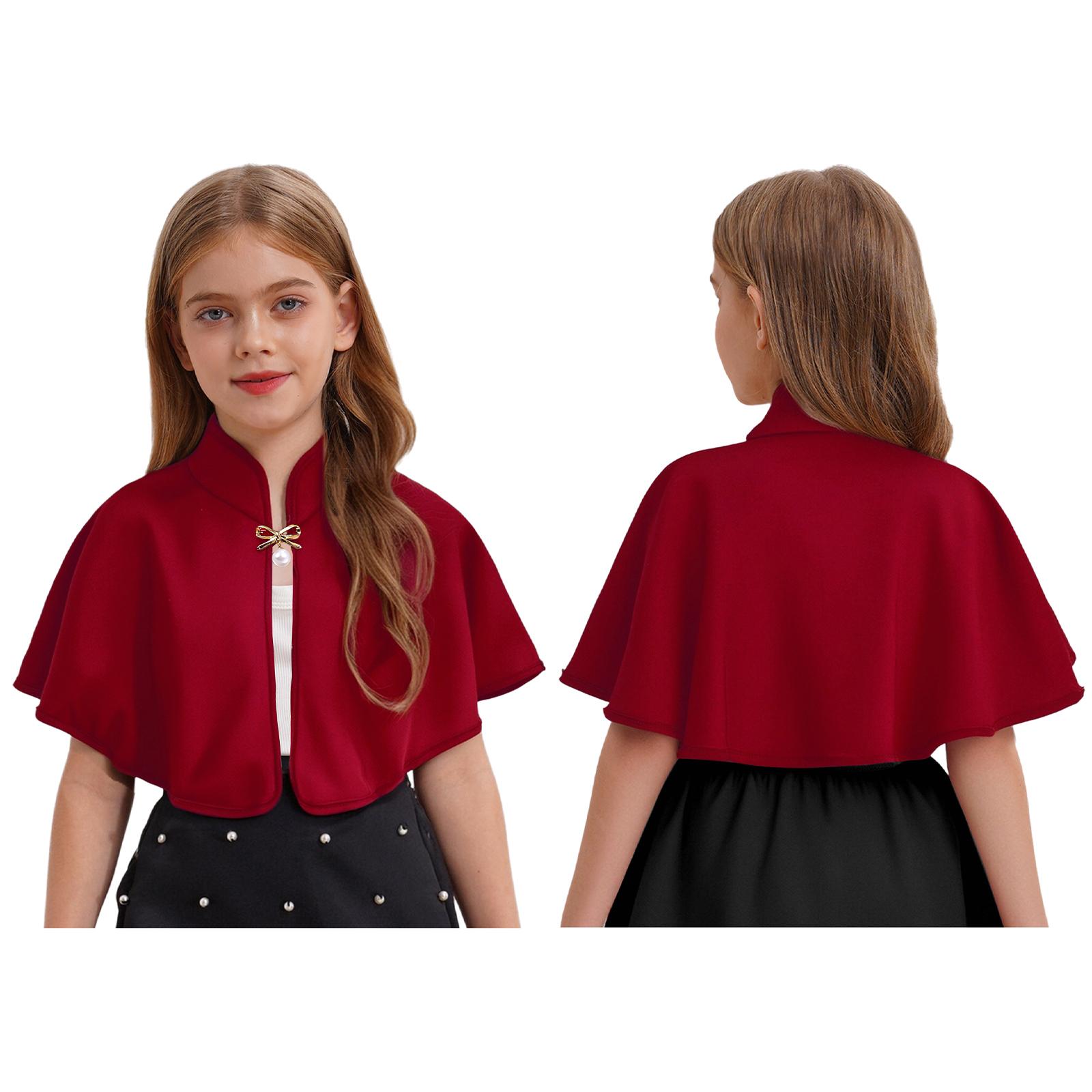 Элегантная шаль-накидка для девочек - Изысканная брошь, воротник-стойка, болеро с открытой передней частью для вечерних платьев бордовый
