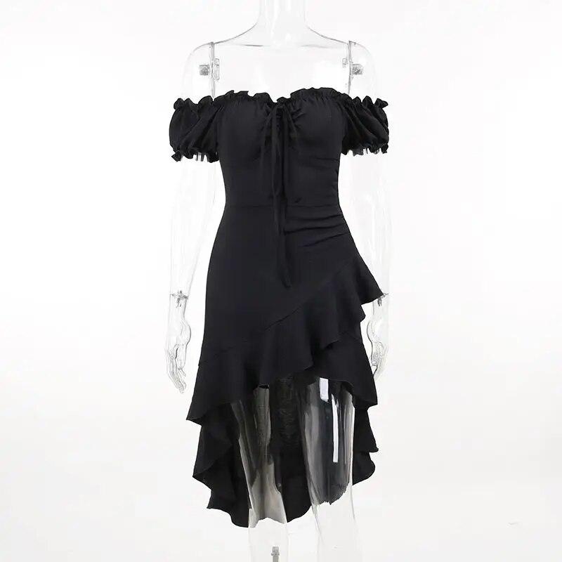 Элегантное винтажное черное платье женское с оборками в стиле пэчворк сексуальное с открытыми плечами тонкое нерегулярное шикарное повседневное платье в стиле Харадзюку XL чёрный