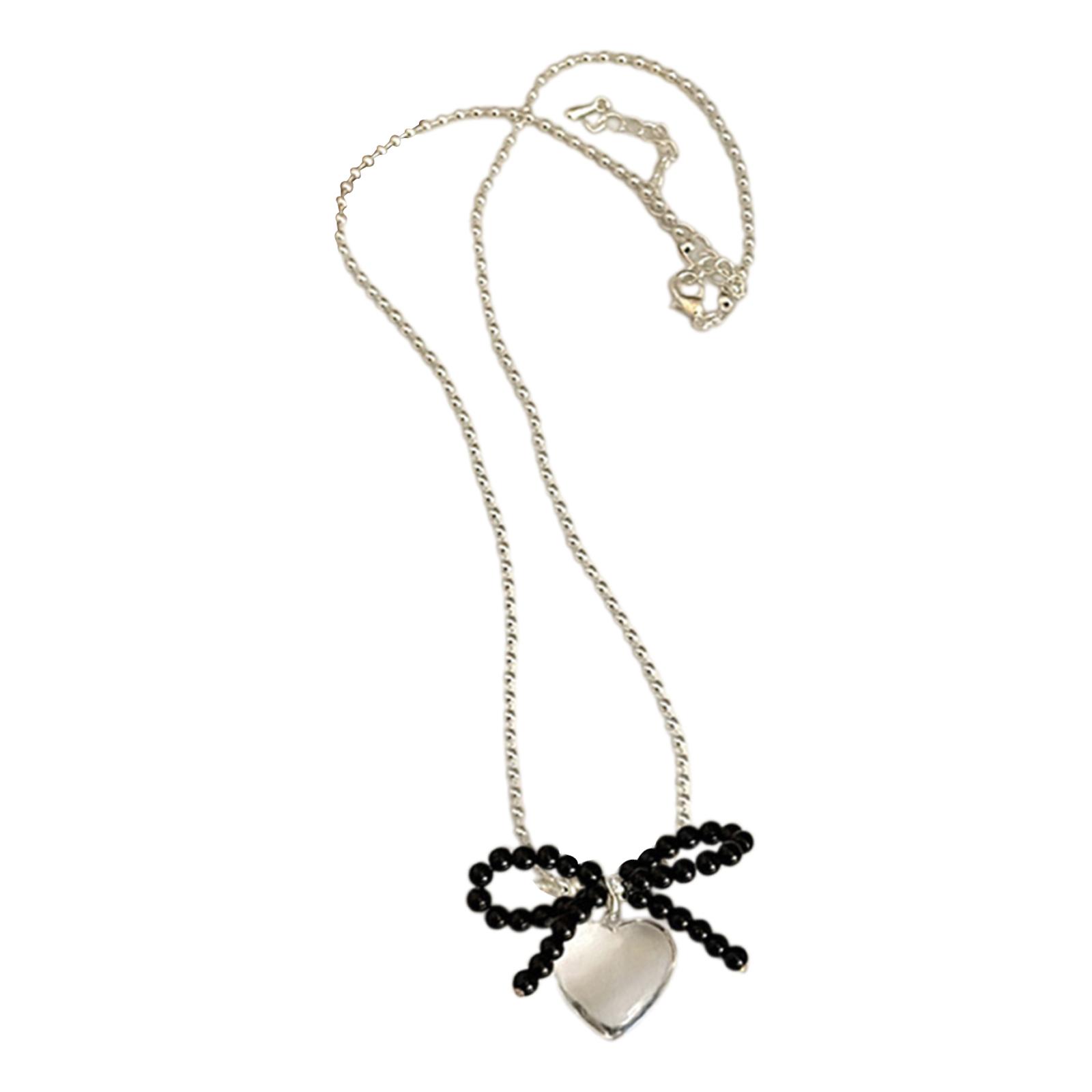 Элегантное жемчужное ожерелье с сердцем. Универсальное жемчужное ожерелье с бантом и привлекательным сердцем для встреч. чёрный