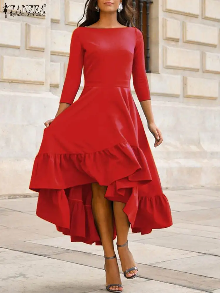 Элегантное женское асимметричное платье-колокол с круглым вырезом ZANZEA вечерние нее платье миди с рукавом 3/4 женские осенние халаты с талией...