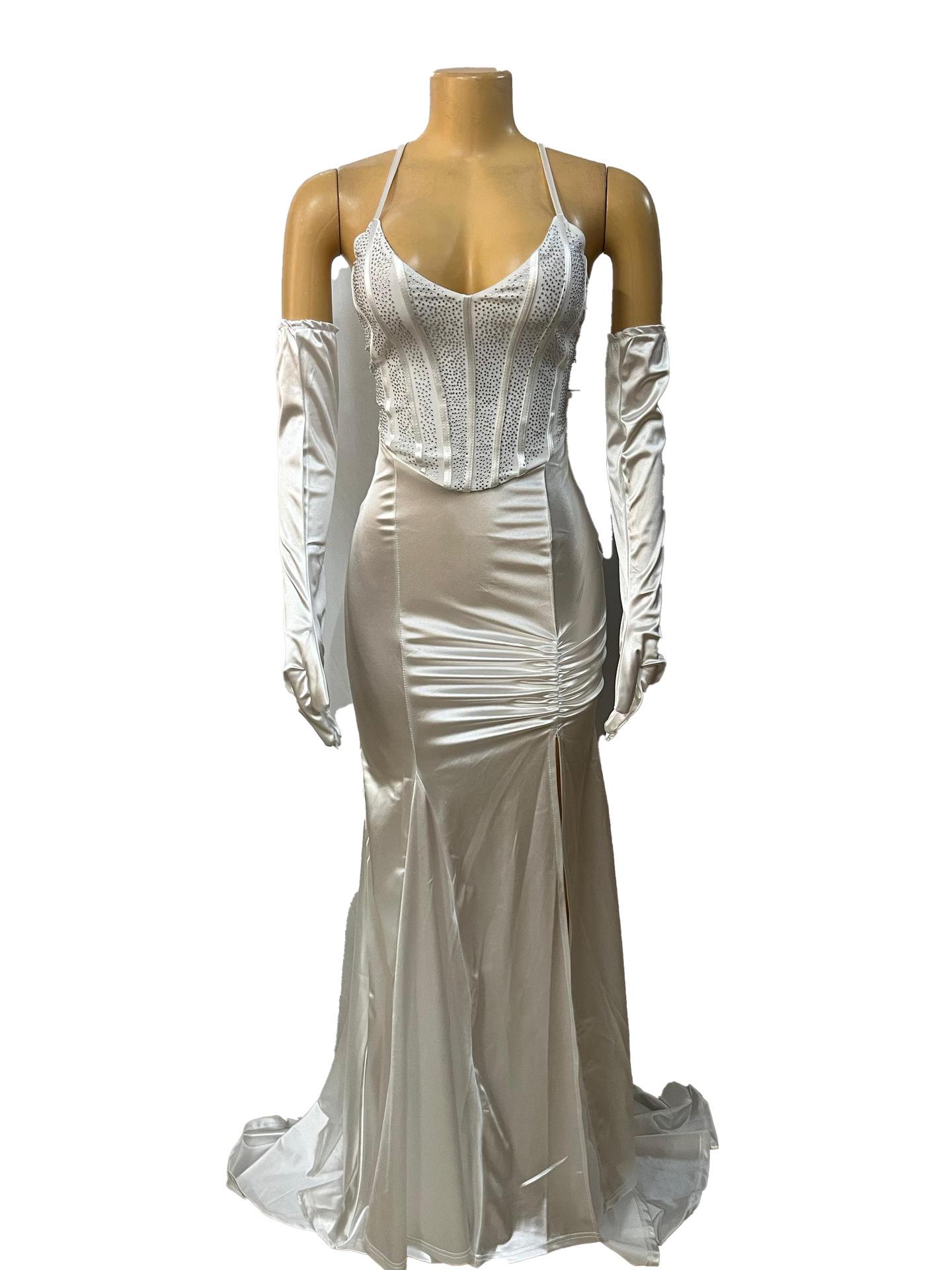 «Элегантное коктейльное платье с пайетками и тонкими бретельками — шикарный европейский и американский стиль» Small белый