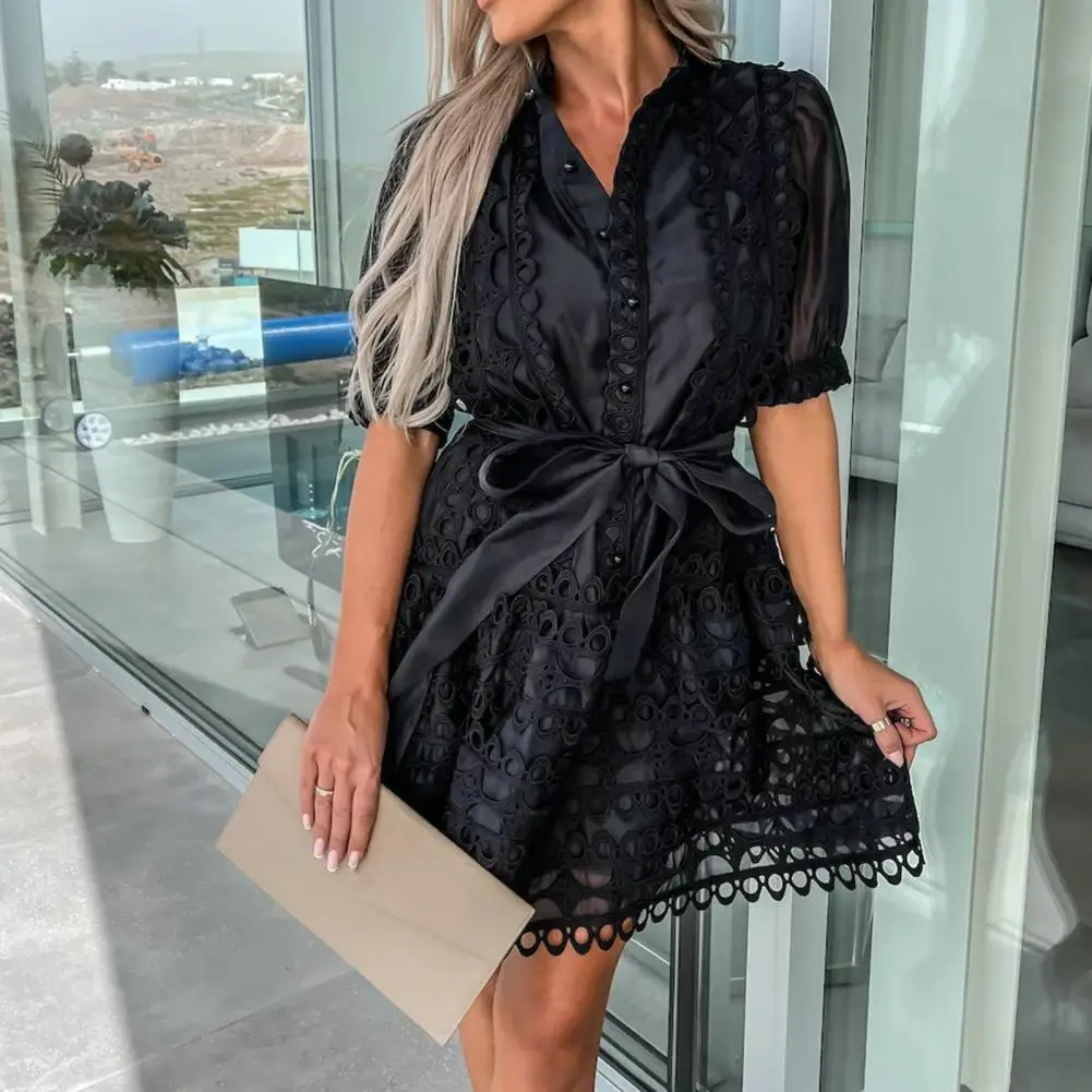 Элегантное летнее женское платье, однотонное свободное Летнее мини-платье А-силуэта с подолом, мягкое платье, женская одежда
