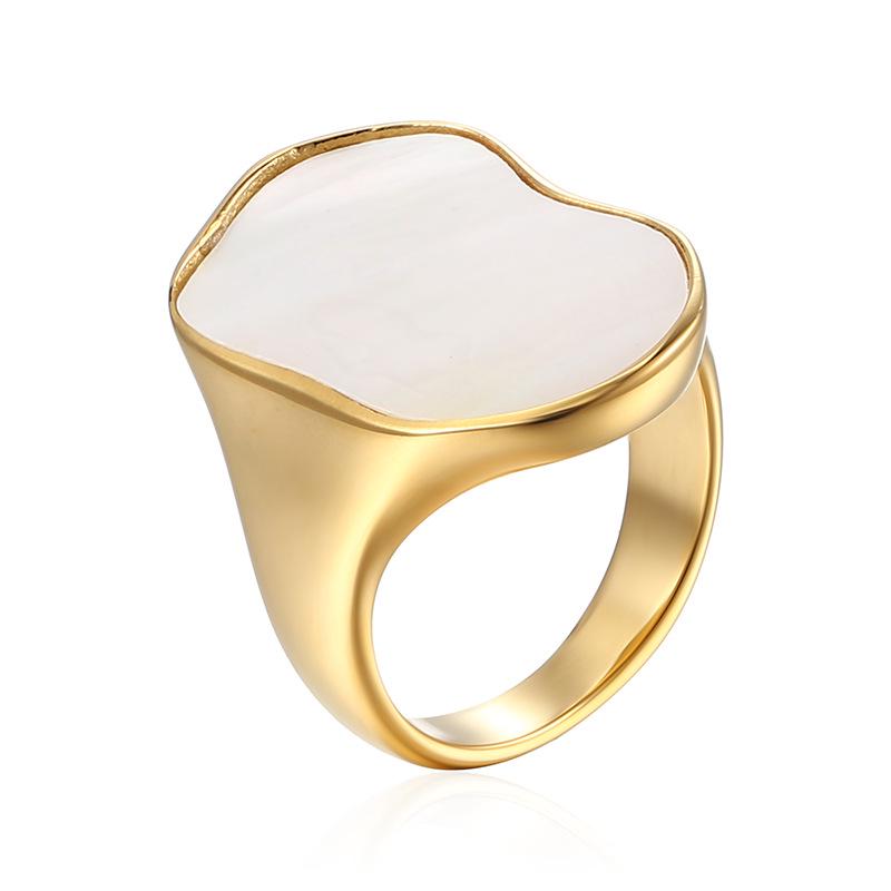 Элегантное нерегулярное кольцо для пары из нержавеющей стали с белым перламутром Size 8 золотой