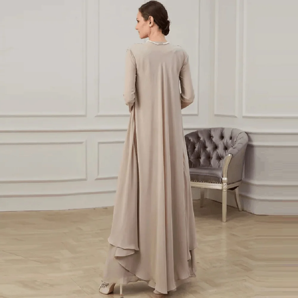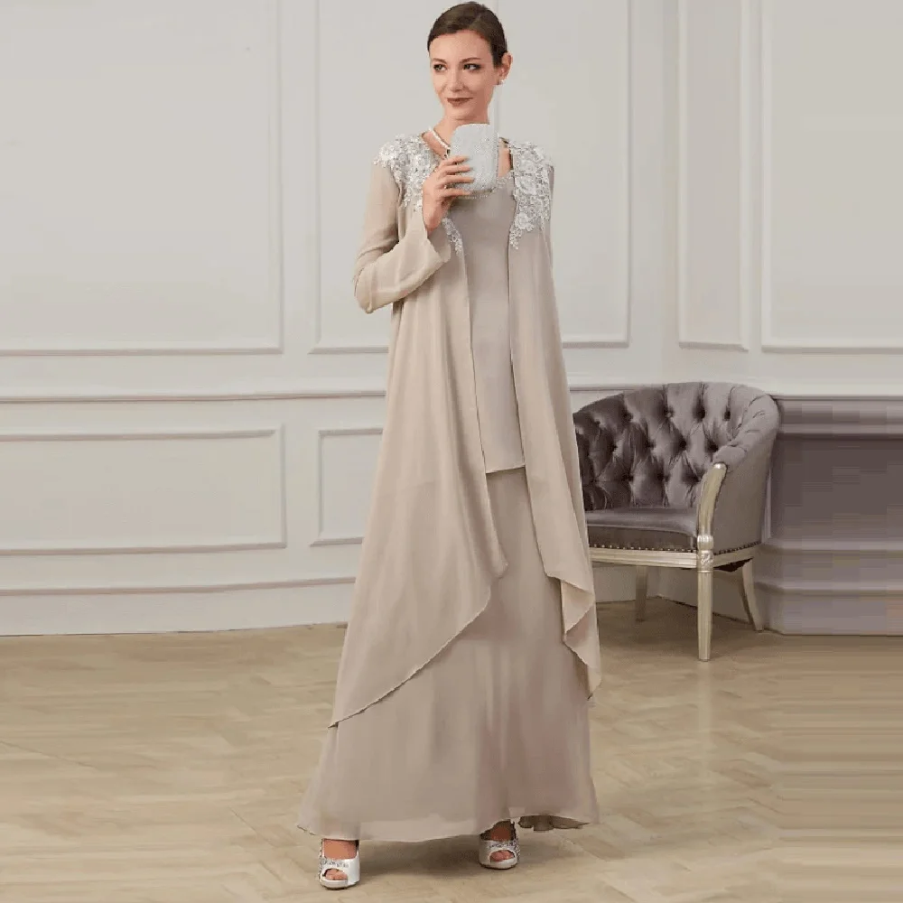 Элегантное платье для матери невесты с V-образным вырезом и длинным рукавом