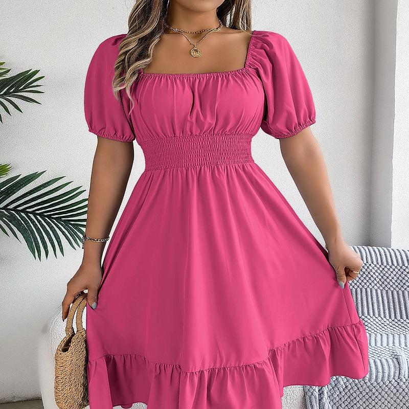 Элегантное платье с высокой талией на весну и лето, длинные платья с квадратным вырезом и короткими рукавами, с рюшами по краю, женские платья XL розы красного