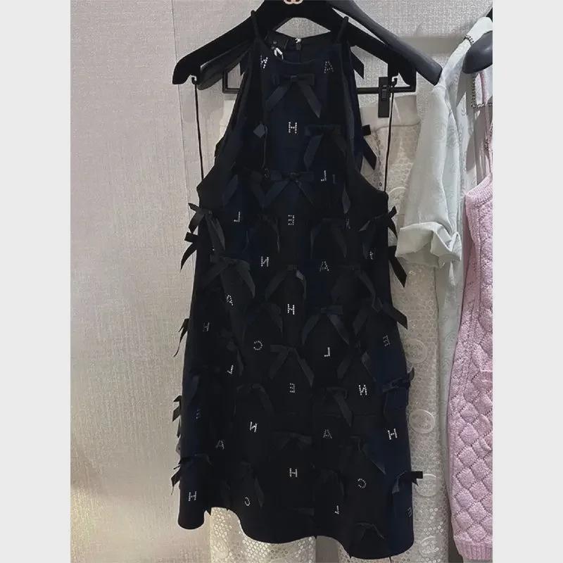 «Элегантное черное платье с халтер-воротом и бантом — женская летняя коллекция» Large чёрный
