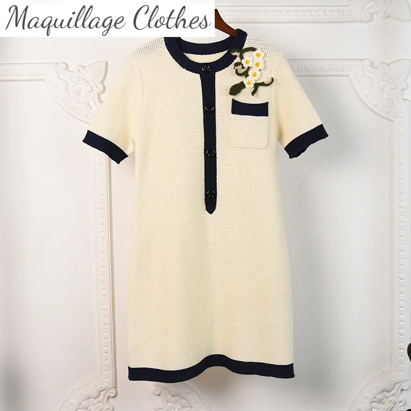 Элегантное шерстяное вязаное платье в французском стиле с цветочным рисунком, высококачественное женское платье с коротким рукавом C740