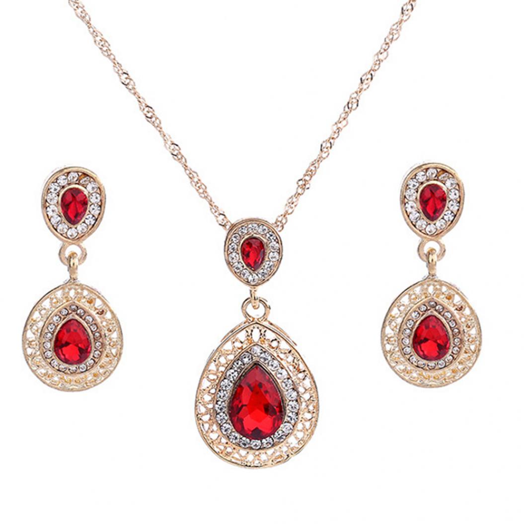 Элегантные Ожерелья Серьги Свадьба Помолвка Женщины Ювелирный Набор Подарок красный
