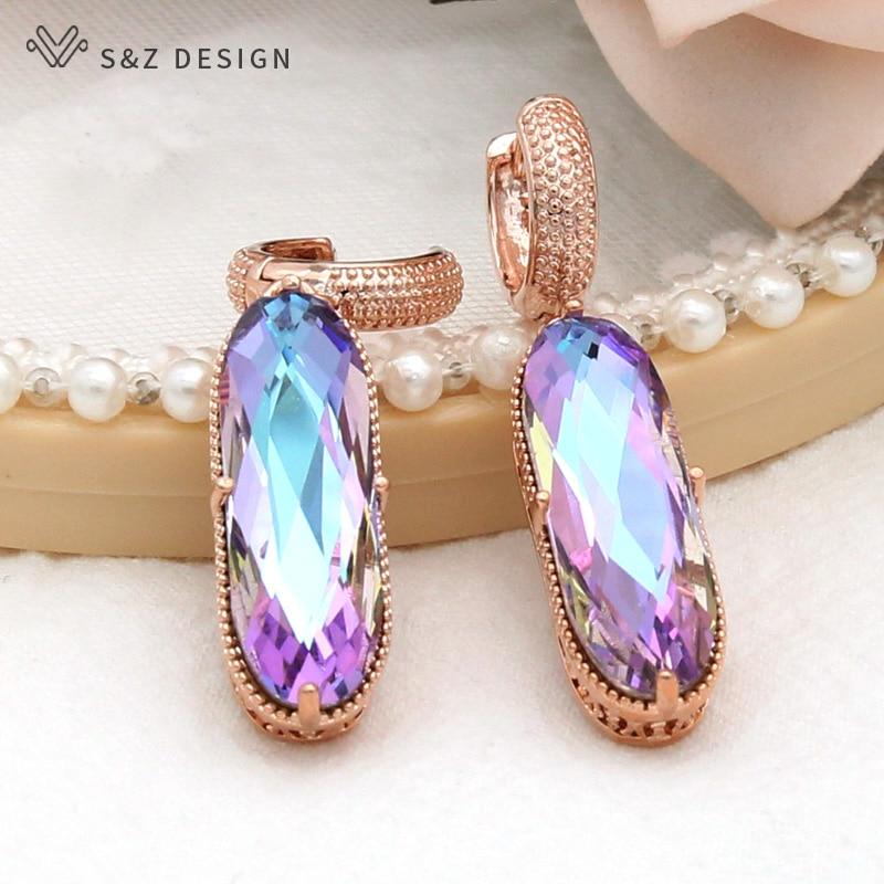 Элегантные большие овальные серьги-подвески с кристаллами для женщин, свадебные роскошные украшения, серьги в форме яйца из розового золота 585 пробы