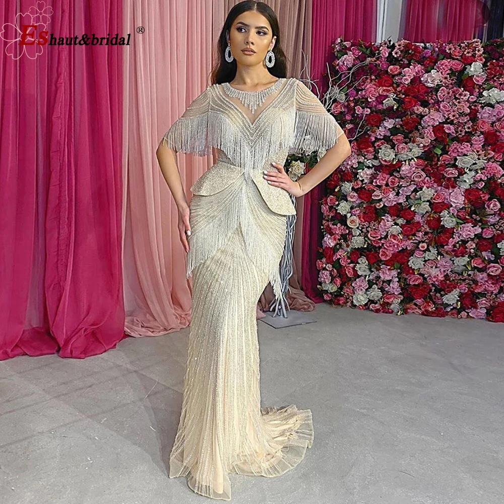 Элегантные вечерние платья Дубая для женщин 2023 кисточки бусины Русалка рукав до локтя сексуальные Формальные Выпускные свадебные платья