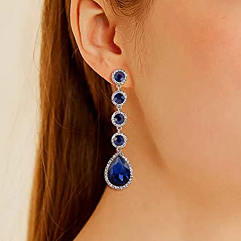 Элегантные висячие серьги Huitan с синим кубическим цирконием для женщин, модные Универсальные Свадебные и Помолвочные аксессуары для невест...