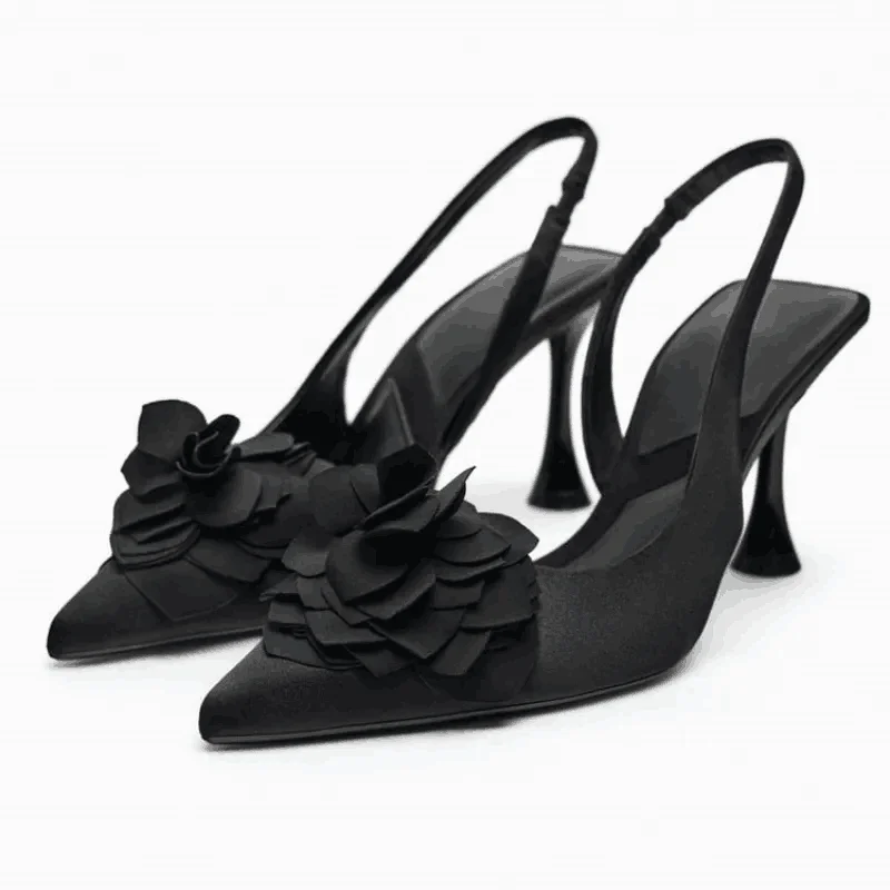 Элегантные женские черные туфли-лодочки TRAF с острым носком на высоком каблуке с ремешком на пятке женские вечерние туфли на шпильке с цветочным рисунком