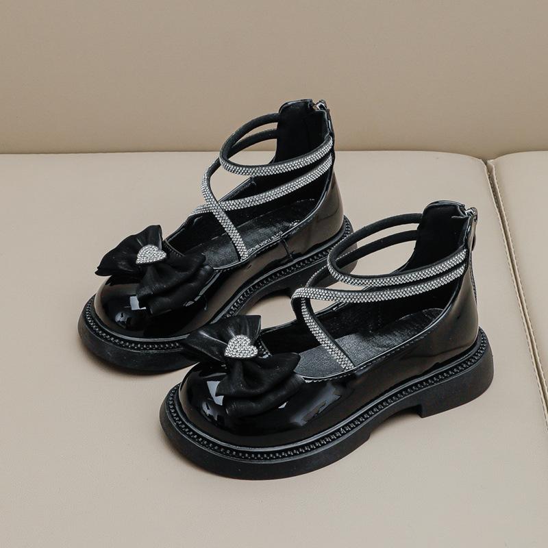 Элегантные маленькие кожаные туфли с круглым носком для девочек весна/лето с бантом 26 чёрный
